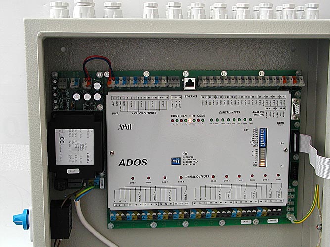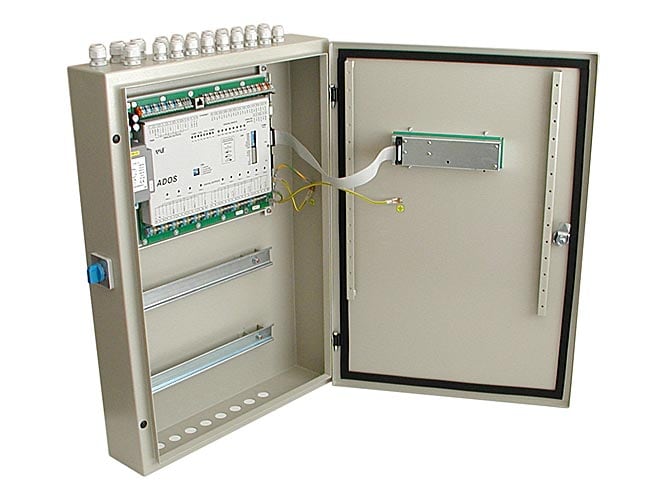 Kompakt és robosztus kialakítású vezérlőrendszer fém kapcsolószekrénybe építve, kijelzővel és parametrizáló billentyűkkel, melyet elsősorban hőközpontokba, légtechnikai vezérlőkbe és gépészeti funkcionalitású létesítményekbe fejlesztettek ki. Az eszköz DIN sínnel szerelt elosztószekrénnyel együtt érkezik, így a telepítése gyors, a kábelek bekötése pedig kényelmes.