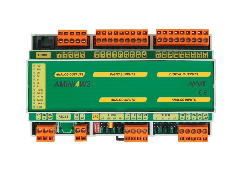 Az AMiNi4W2 egy szabadon programozható vezérlőközpont, ami a kijelzőt és a nyomógombokat kivéve teljesen megegyezik AMiNi4DW2-vel. Funkcióit beépített webszerverrel bővítették ki. SD kártyájával hosszútávú tárolást biztosít a mért értékeknek. Az AMiNi4W2/G verzió GSM modult tartalmaz, amivel a vezérlő szükség esetén SMS tud küldeni. A többi vezérlővel ellentétben, nincsenek előre konfigurált kapcsolók, minden szabadon programozható, és a kommunikációs címeket definiálására is a DetStudio programozói környezetében van lehetőség.