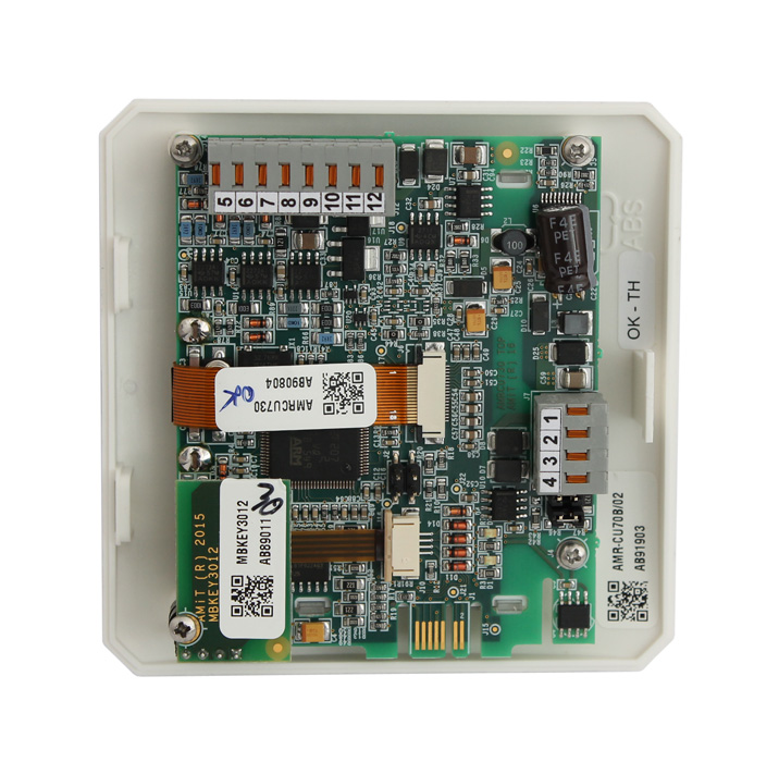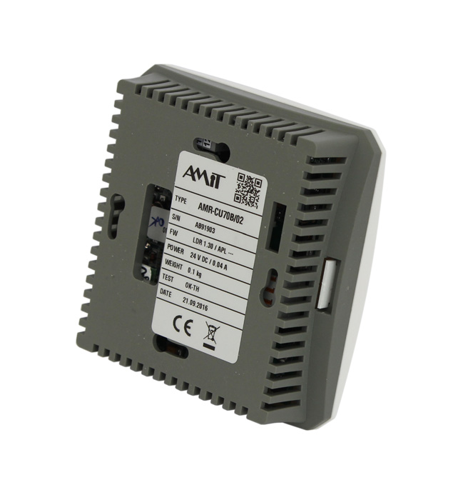 Az AMR-CU70B egy szabadon programozható falivezérlő, melynek külső megjelenése megegyezik az AMIT AMR-OP70-es szobai vezérlő sorozattal. A kettő RTD bemenettel (hőmérséklet mérés), kettő digitális és egy analóg kimenettel felszerelt eszköz egyszerre képes vezérlő egységként és önálló hőmérsékletmérőként funkcionálni. Érintőképernyőjével és igényszerint programozható menürendszerével rengeteg funkciót, és egyszerű használatot biztosít.