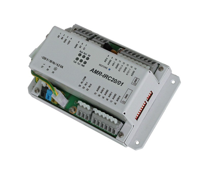 Az AMR-IRC20 segítségével könnyedén megoldható a fokozatmentes sebesség vezérlés AC eszközök esetében. Egy AMR-OP70, AMR-OP71 vagy AMR-OP3x HMI-vel összekapcsolva a helyiség lokális vezérlőközpontja lehet. A másik RS485-ön keresztül pedig egy felsőbbrendű irányítási hálozathoz kapcsolódhat. Ez rendezettebb, egyszerűbben átlátható felépítést eredményez.