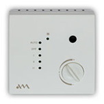AMR-OP35AHőmérsékletmérés, komfort/ időterv mód, tekerhető gomb + LED, állapotjelző zöld LED, (AUTO,OFF, I, II, III) mód