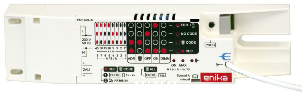 A P8 R DALI N -t DALI buszon kommunikáló lámpatestek vezérlésére fejlesztették. Az eszközzel akár 4 db lámpacsoportot is vezérelhetünk.